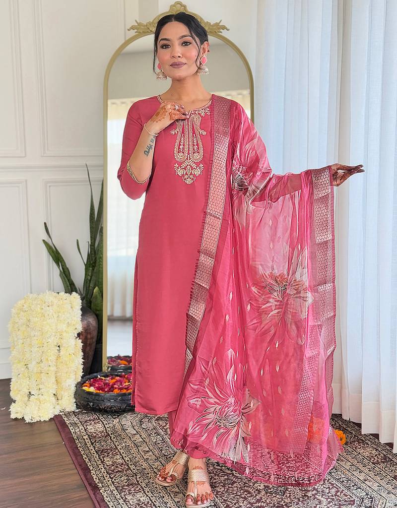 • Style : Salwar • Color : Dark Rose • Fabric : Faux Chanderi • Color : Dark Rose Dupatta Details