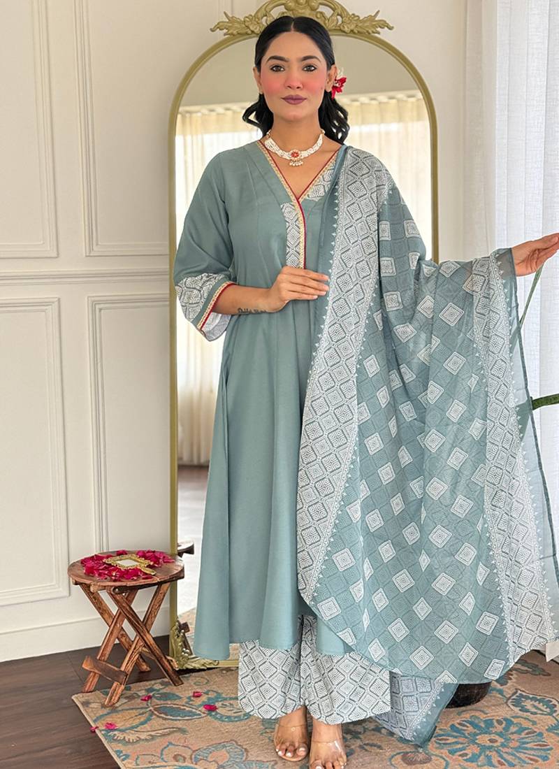 • Product Id : 4705938 • Package Details : 1 Top / 1 Bottom / 1 Dupatta • Type : Kurta Sets • Occasion : Ceremonial • Work : Embroidered • Type : Floral Print • Look : Designer • Sleeve : Quarter Sleeve • Neck Style : V Neck • Color : Grey • Fabric : Faux Rayon • Stitching : Stitched Payments [+]