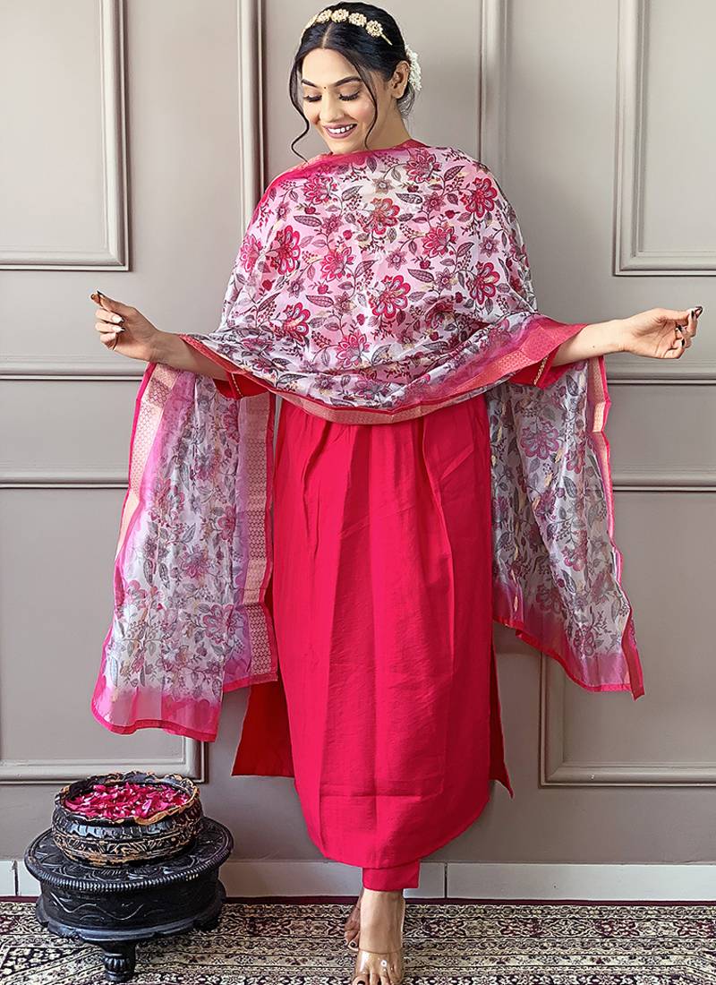 • Style : Salwar • Color : Hot Pink • Fabric : Faux Chanderi • Color : Hot Pink Dupatta Details