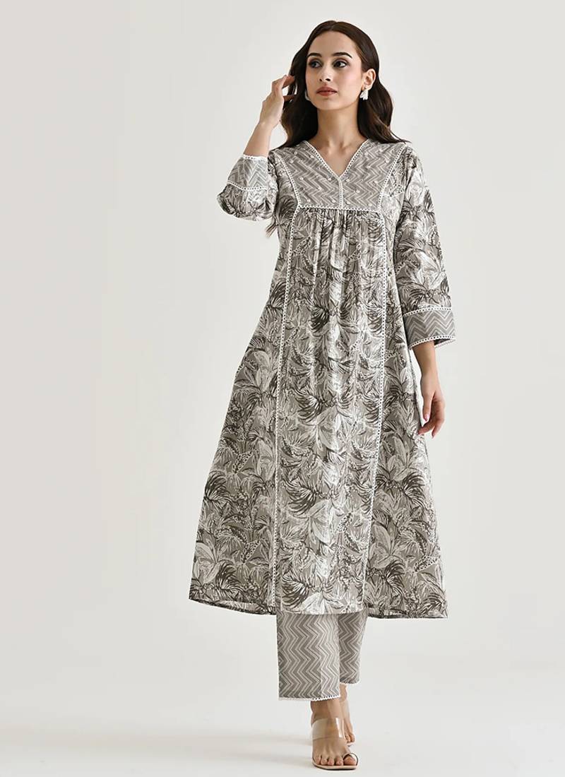 • Product Id : 4708981 • Package Details : 1 Top / 1 Bottom • Type : Kurta Sets • Occasion : Ceremonial • Work : Printed • Type : Floral Print • Look : Designer • Sleeve : Quarter Sleeve • Neck Style : V Neck • Color : Light Grey • Fabric : Faux Rayon • Stitching : Stitched Payments [+]