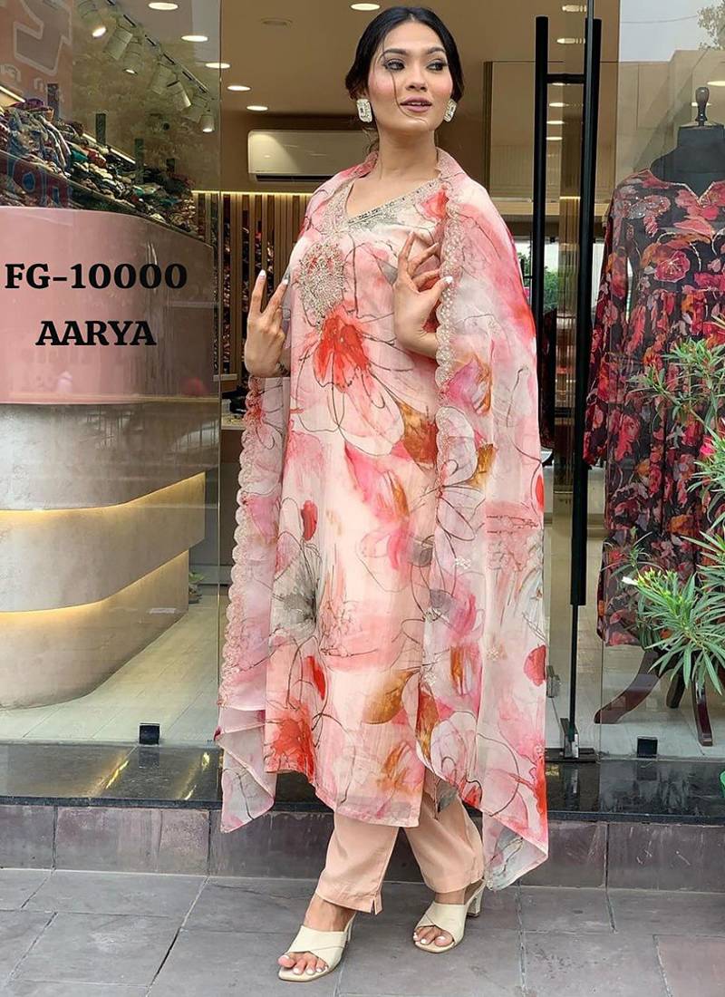 • Product Id : 4694988 • Package Details : 1 Top / 1 Bottom / 1 Dupatta • Type : Kurta Sets • Work : Embroidered • Type : Floral Print • Look : Designer • Sleeve : Elbow Sleeve • Neck Style : V Neck • Fabric : Organza • Color : Light Pink • Stitching : Stitched Payments [+]
