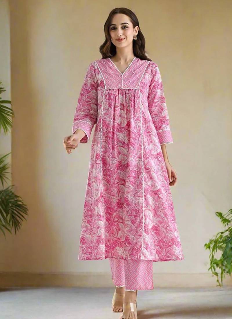 • Product Id : 4708982 • Package Details : 1 Top / 1 Bottom • Type : Kurta Sets • Occasion : Ceremonial • Work : Printed • Type : Floral Print • Look : Designer • Sleeve : Quarter Sleeve • Neck Style : V Neck • Color : Light Pink • Fabric : Faux Rayon • Stitching : Stitched Payments [+]