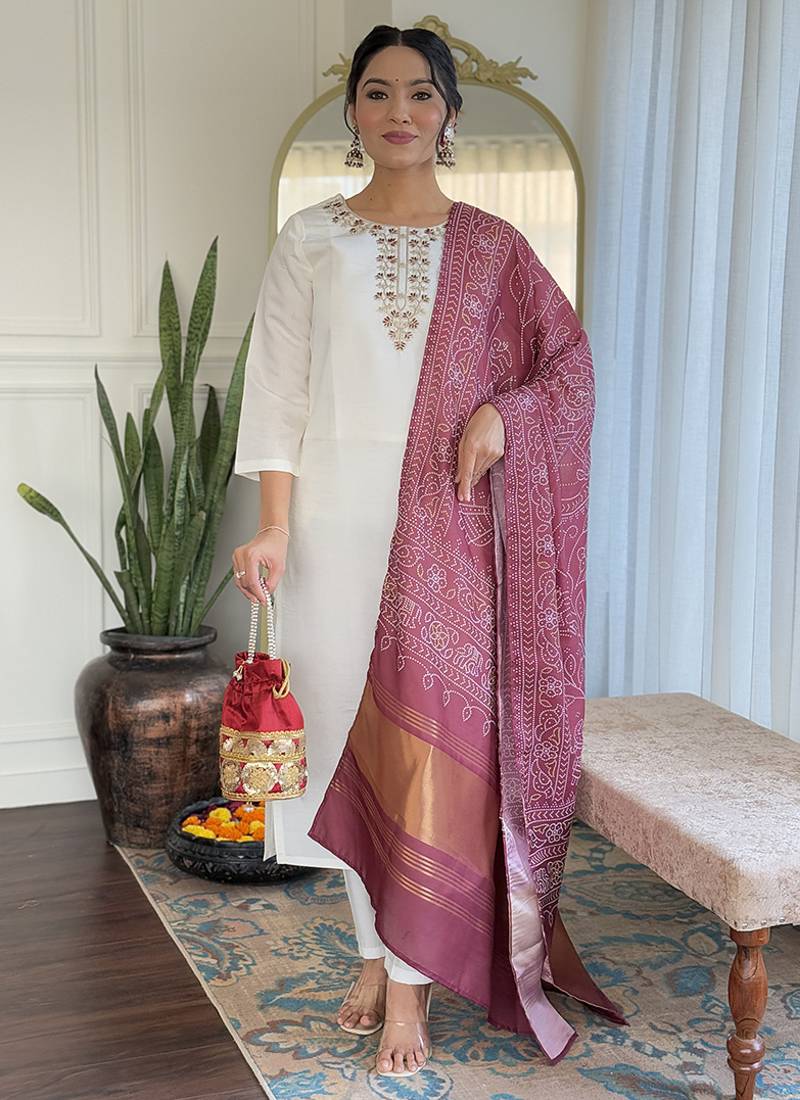 • Style : Salwar • Color : Off White • Fabric : Silk Blend • Color : Off White Dupatta Details