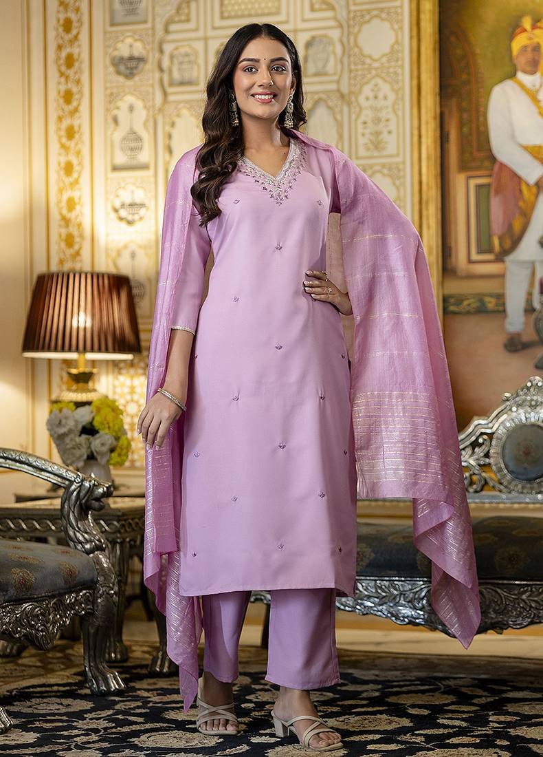 Pink Color Embroidered Viscose Rayon Kurta Set Stitched