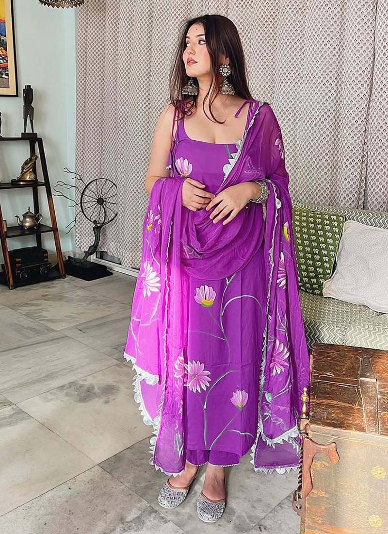 • Kameez : Color- Purple • Dupatta : Color- Purple / Fabric- Georgette • Bottom : Color- Purple / Fabric- Faux Crepe Kameez Details