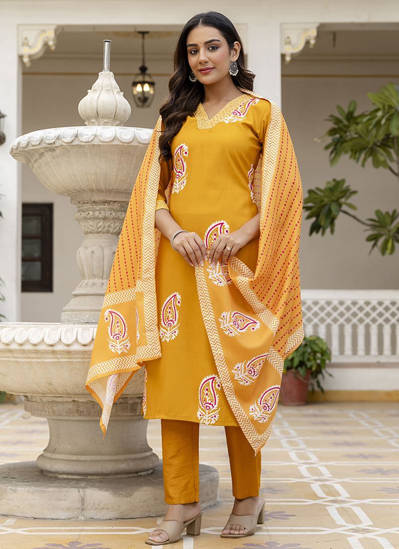 Make the heads flip when you costume up in this kind of a attractive mustard rayon salwar kameez. The incredible dress creates a dramatic canvas with amazing printed work. Comes with matching bottom and dupatta. (Slight variation in color, fabric & work is possible. Model images are only representative.)