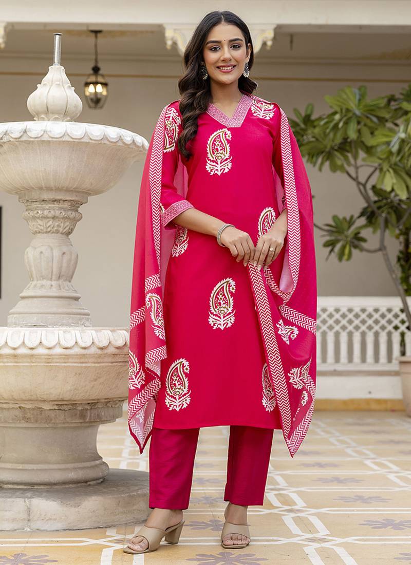Rayon Rani Pink Printed Salwar Kameez Stitched