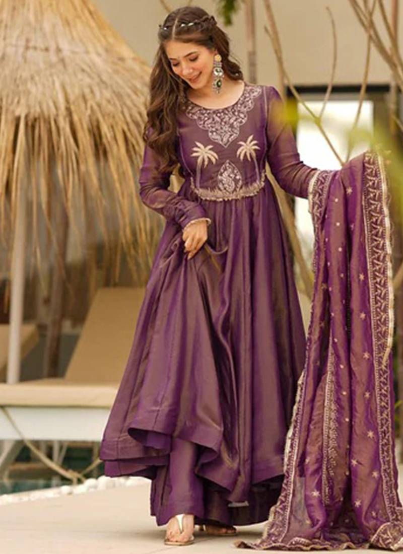 Wine Color Two Tone Shimeer Anarkali Set Stitched