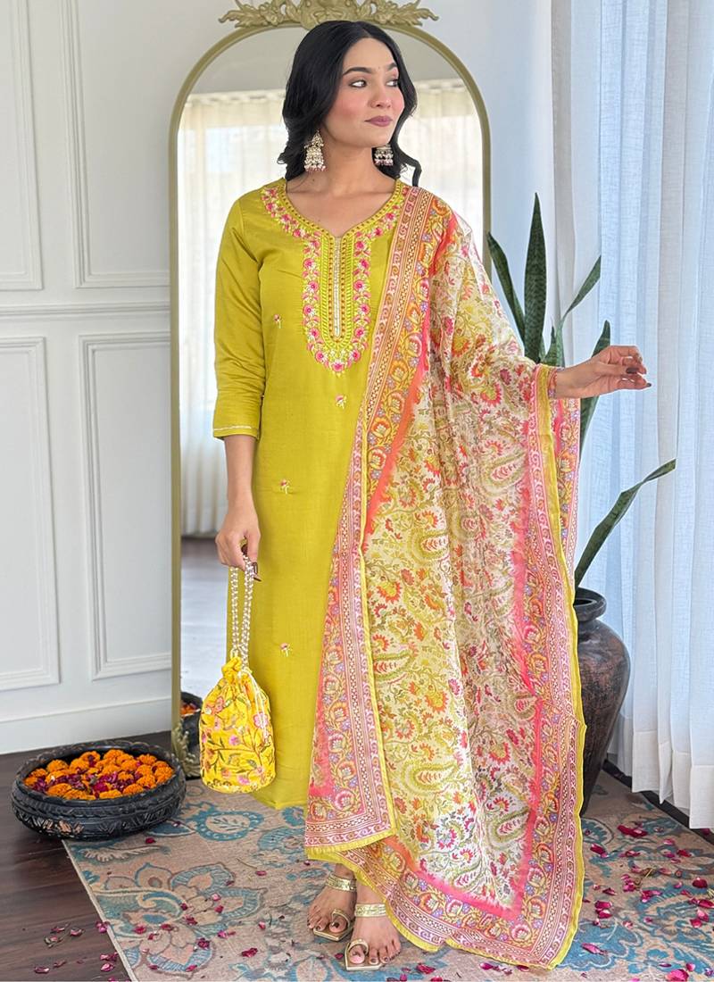 • Product Id : 4705958 • Package Details : 1 Top / 1 Bottom / 1 Dupatta • Type : Kurta Sets • Occasion : Ceremonial • Work : Embroidered • Type : Floral Print • Look : Designer • Sleeve : Quarter Sleeve • Neck Style : U Neck • Color : Yellow • Fabric : Faux Rayon • Stitching : Stitched Payments [+]