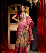 • Saree : Color- Golden / Fabric- Tissue • Blouse : Color- Pink / Fabric- Tissue Saree Details