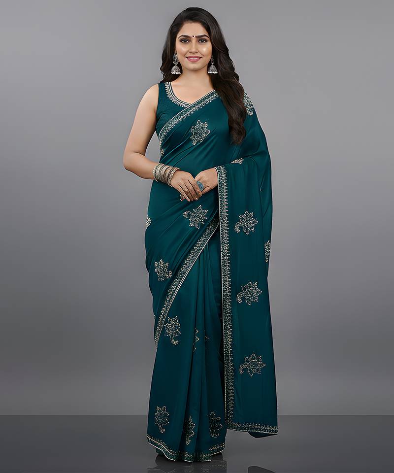 Blue Embroidered Viscose Saree Featuring A Smooth, Fluid Drape And Rich Color Appeal. Enhanced With Delicate Embroidery That Adds Elegance And Sophistication. Comfortable And Stylish, This Saree Is Ideal For Festive Occasions, Celebrations, And Evening Wear, Perfectly Blending Traditional Charm With Modern Grace.