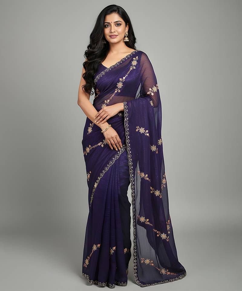 Purple Embroidered Silk Satin Saree Showcasing A Rich, Glossy Finish And Fluid Drape. Adorned With Intricate Embroidery That Adds Elegance And Regal Charm. Luxurious Yet Comfortable, This Saree Is Perfect For Weddings, Festive Occasions, And Evening Celebrations, Beautifully Enhancing Traditional And Contemporary Ensembles.