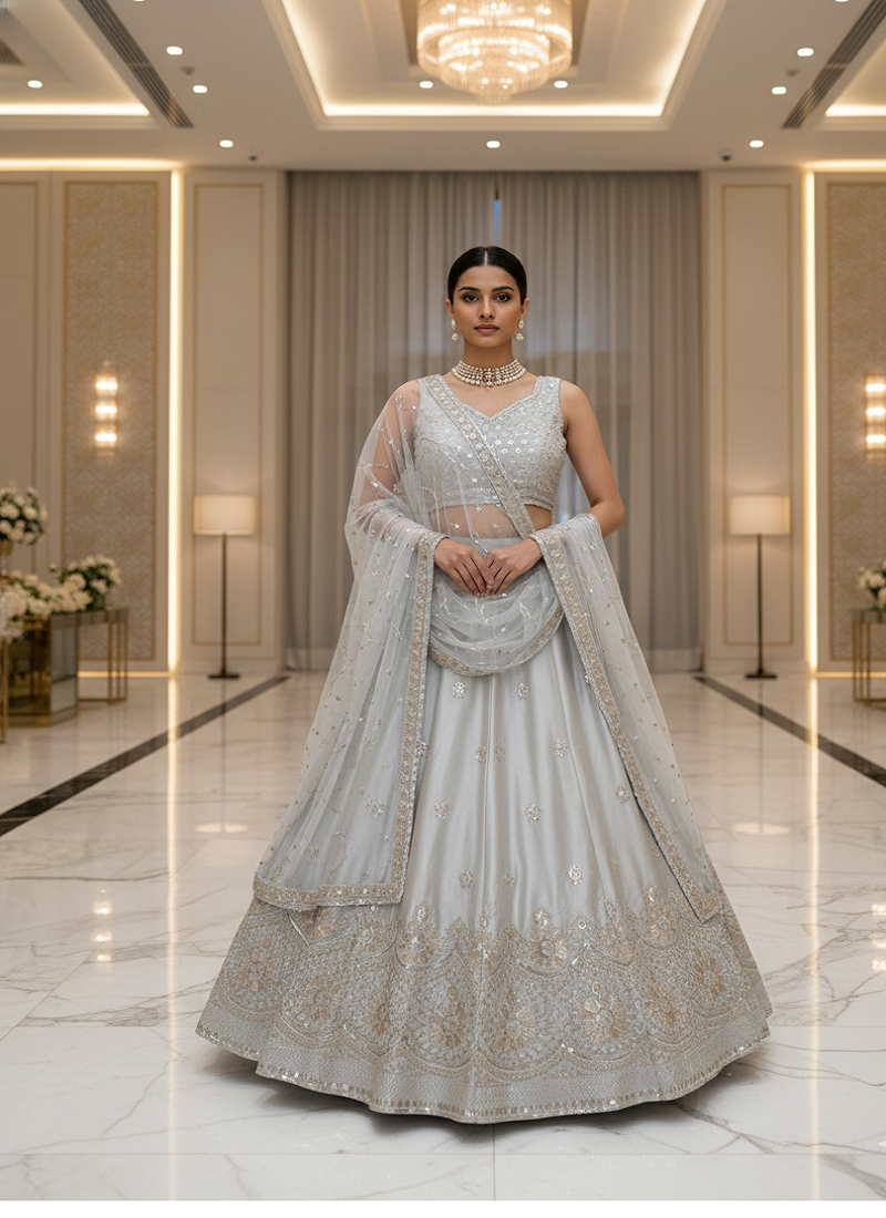 $150.93$444.0(66% OFF)price changedSelect SizexGrey Satin Silk Sequin Embroidered Lehenga Choli Set With Choli And Dupatta$150.93$444.066% OFFSize$150.93$444.0(66% OFF)Size$150.93$444.0(66% OFF)Product ID : 4690986Estimated Delivery: 04 Feb 2026NEED HELP ?Price Match Promise