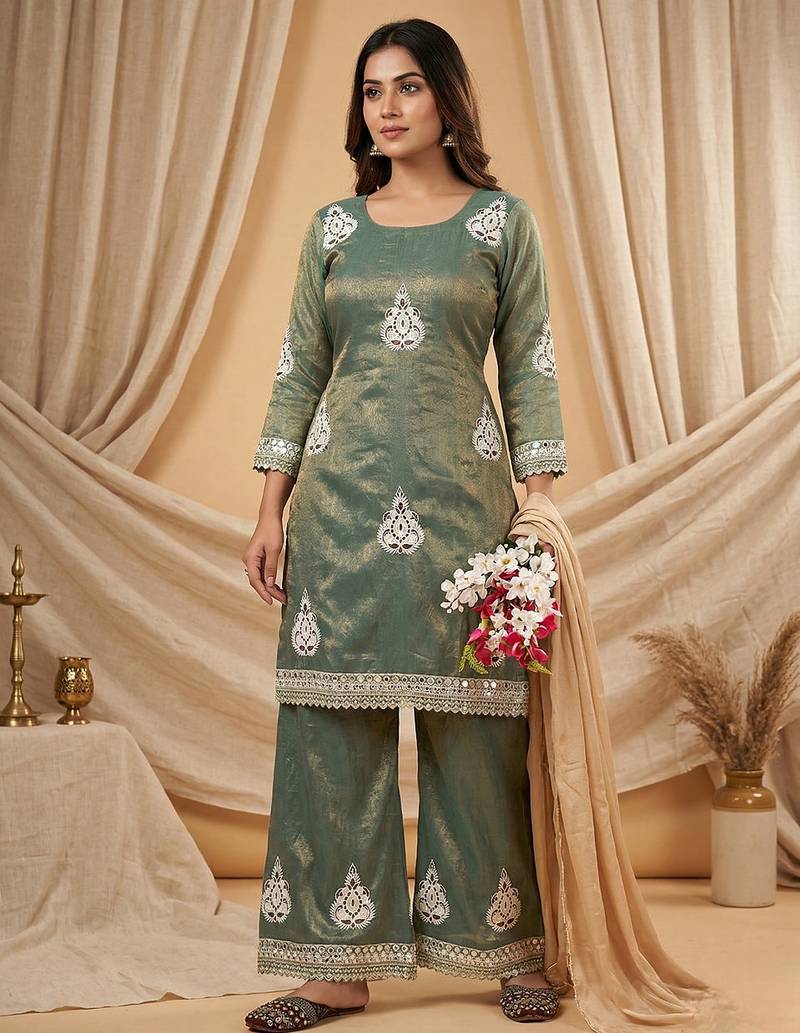 • Fabric : Silk • Color : Green • Style : Palazzo • Max Length : 40 • Length : 40 • Color : Green Dupatta Details