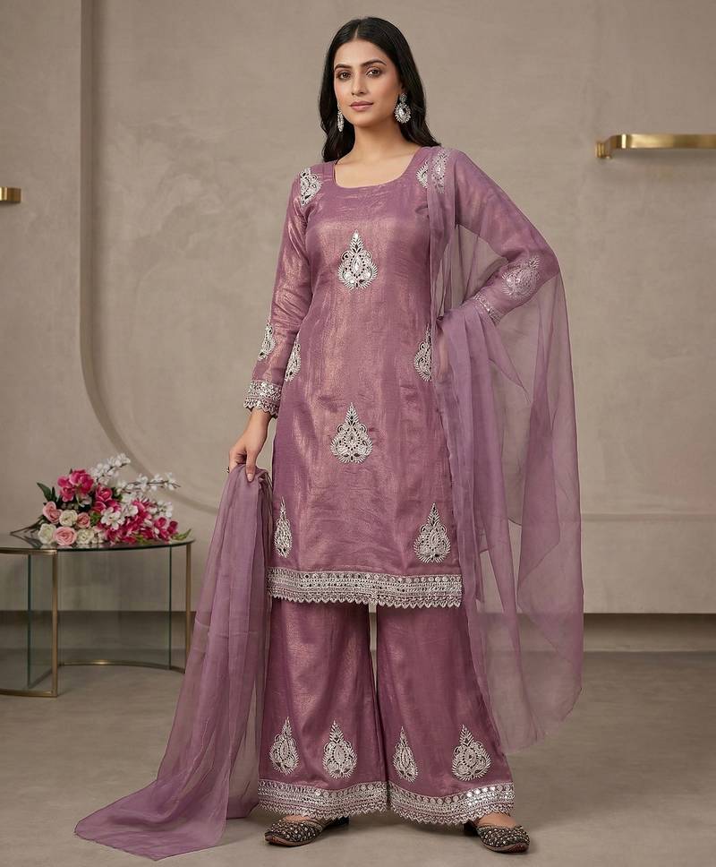 • Fabric : Silk • Color : Lavender • Style : Palazzo • Max Length : 40 • Length : 40 • Color : Lavender Dupatta Details