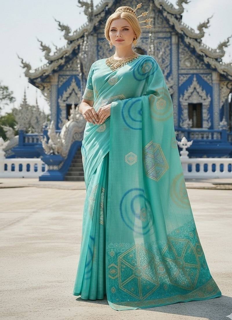 • Product Id : 4715666 • Package Details : 1 Saree/1 Blouse • Type : Jacquard Sarees • Work : Printed • Type : Pre Stitched Saree • Stitching : Stitched • Length : 5.5 Meters Stitching [+]