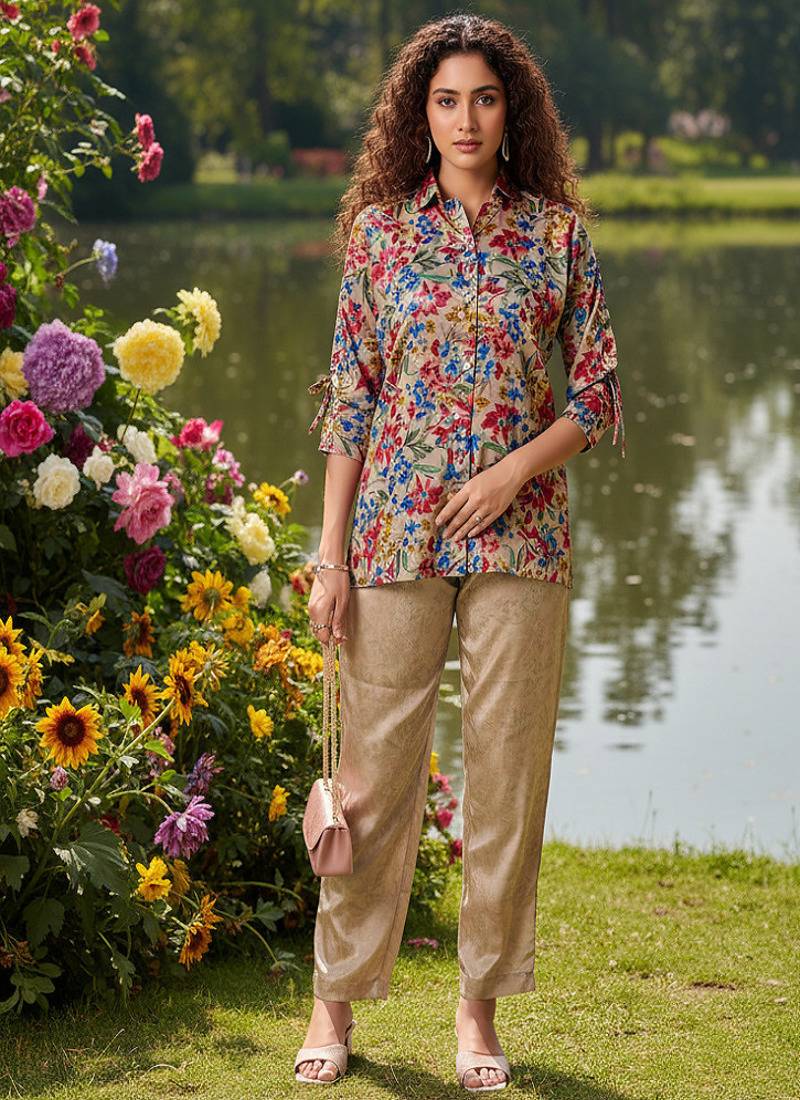 • Product Id : 4690449 • Package Details : 1 Top /1:Bottom /1:Scarf • Type : Co Ord Sets • Fabric : Crepe • Work : Printed • Type : Geometric Print • Sleeve : Full Sleeve • Color : Multicolor • Stitching : Stitched • Length : Knee Length • Length : Knee Length Payments [+]