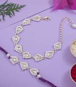 Raksha Bandhan is popular traditional Indian Festival. On this day, sisters of all ages tie a talisman, or amulet, called the rakhi, around the wrists of their brothers, symbolically protecting them, receiving a gift in return, and traditionally investing the brothers with a share of the responsibility of their potential care. The festival is also called as Rakhi Poornima, Nariyal Poornima and Kajari Poornima in different states and is celebrated differently. In short, Raksha Bandhan symbolizes the unmatched bond of love, care and respect. This thoughtful combo set also includes traditional Roli Chawal for the auspicious ceremony, adding a touch of tradition and symbolism to the Rakshabandhan festivities. Additionally, it comes with a beautifully designed Rakshabandhan Greeting Card, perfect for expressing heartfelt sentiments and well wishes to your beloved brother and sister-in-law. Whether you're near or far, this Designer Kundan Pearl Hanging Bhaiya Bhabhi Lumba Rakhi Bracelet Combo Set is the perfect way to convey your love and blessings on Rakshabandhan, creating cherished memories that will last a lifetime.