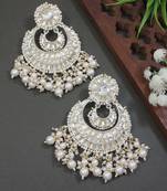 Gold Plated Traditional Kundan Pearl Chandbali Earrings For Women And Girls