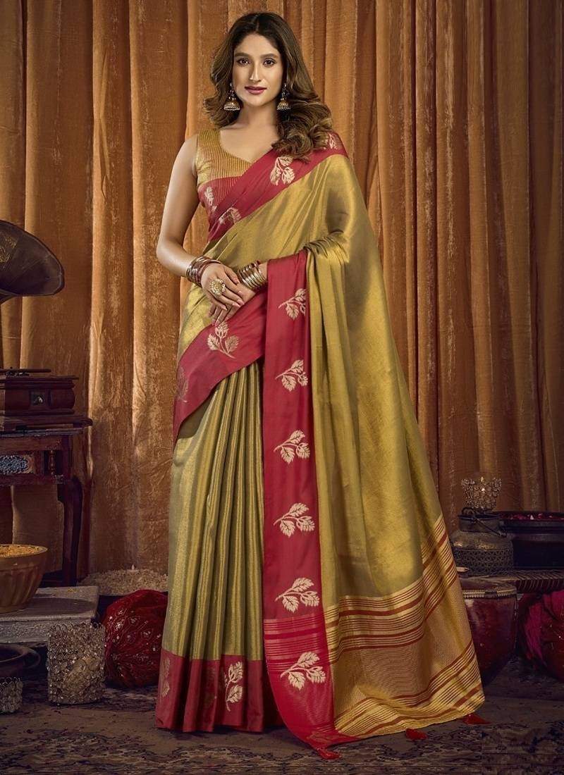 • Saree : Color- Golden / Fabric- Tissue • Blouse : Color- Golden / Fabric- Tissue Saree Details