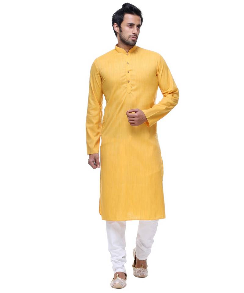 • Product Id : 3141914 • Package Details : 1 Kurta / 1 Bottom • Type : Sherwani • Work : Embroidered • Bottom Style : Churidar • Sleeve : Quarter Sleeve • Neck Style : Round Neck • Bottom Fabric : Art Silk • Bottom Color : White • Top Color : Yellow • Top Fabric : Cotton • Type : Not Specified • Stitching : Stitched Payments [+]