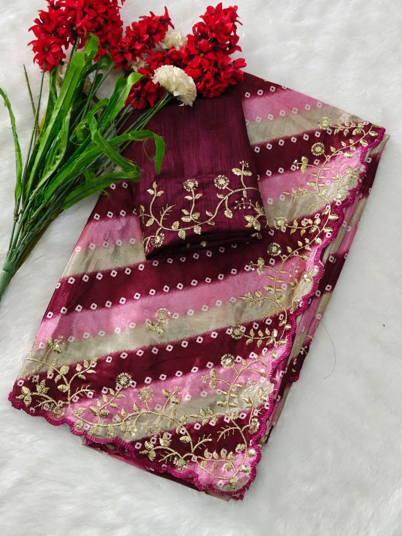 Chiffon Lehriya Bandhani Design Saree With Heavy Thread & Sequins Work
