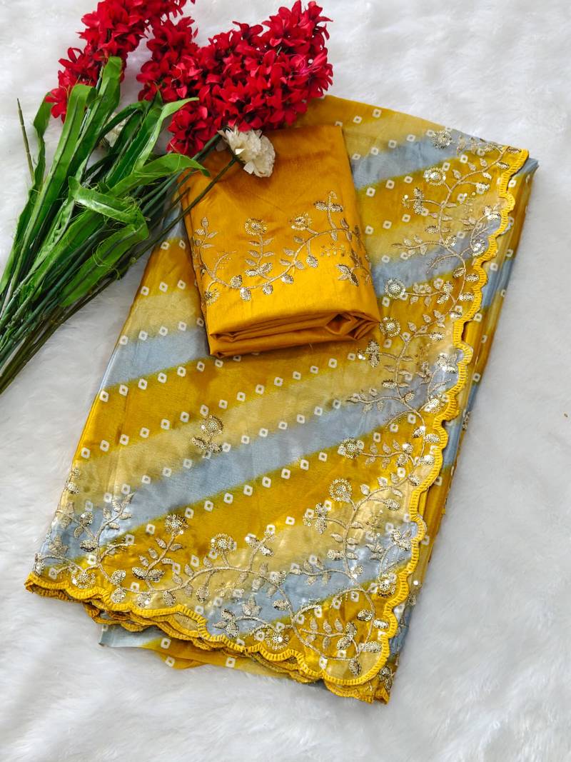 Chiffon Lehriya Bandhani Design Saree With Heavy Thread & Sequins Work