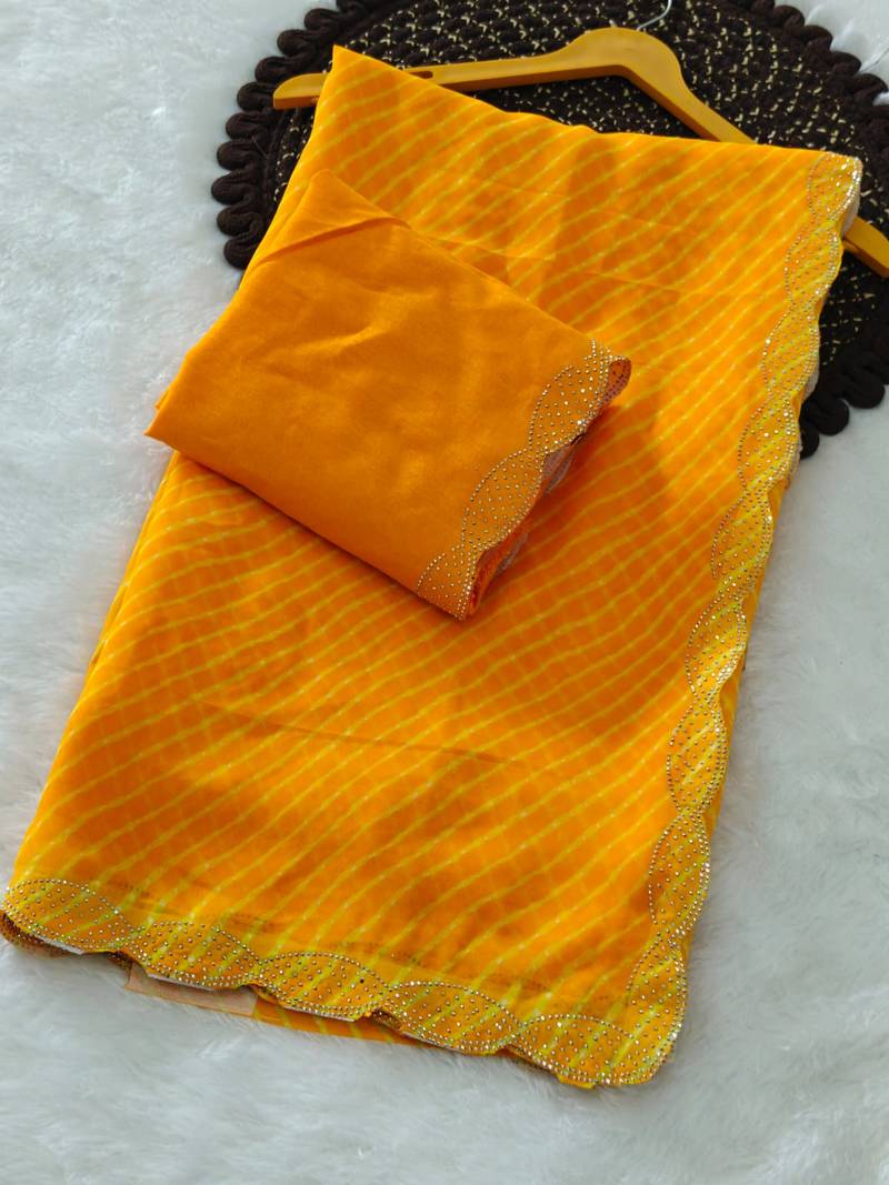 Designer Georgette Saree With Elegant Design Pattern & Diamond Cutwork Border With Blouse Piece