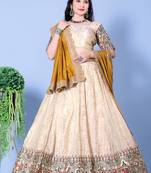 • Style : A Line Lehenga • Fabric : Art Silk • Color : Cream • Work : Embroidered Blouse Details