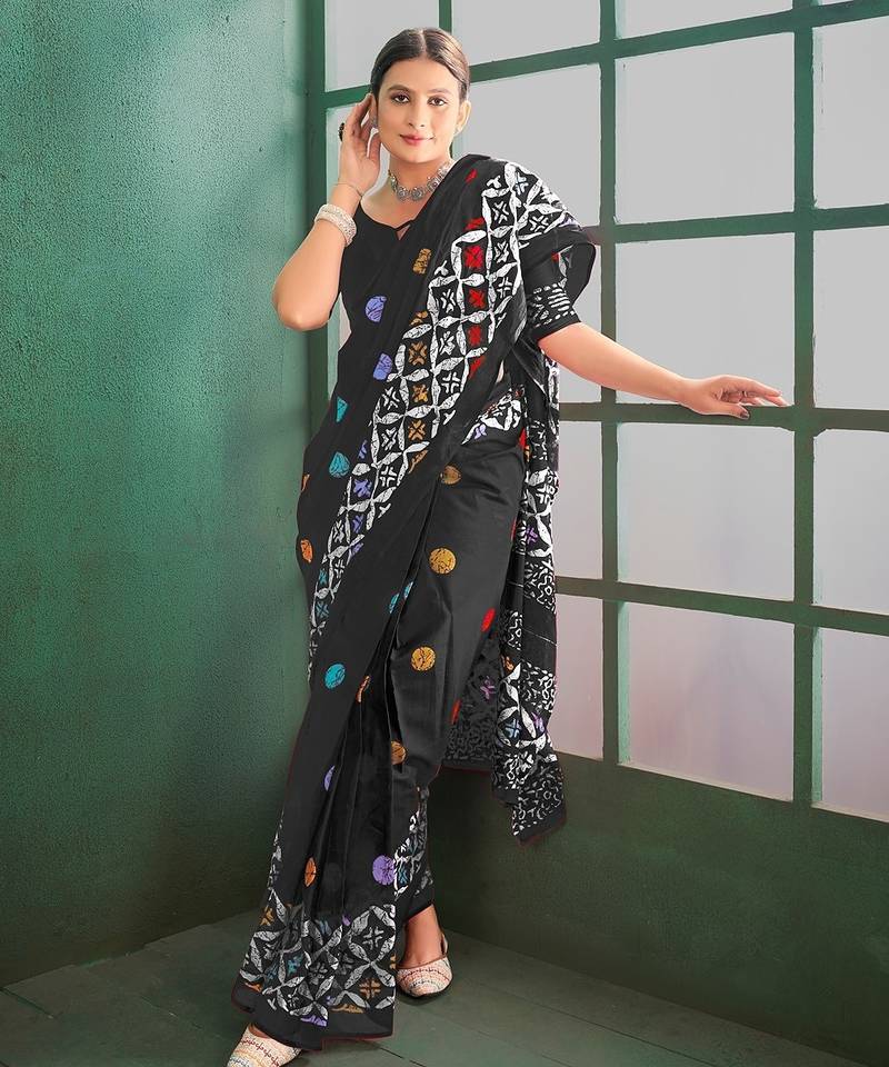 • Saree : Color- Black / Fabric- Pure Cotton • Blouse : Color- Black / Fabric- Cotton Saree Details