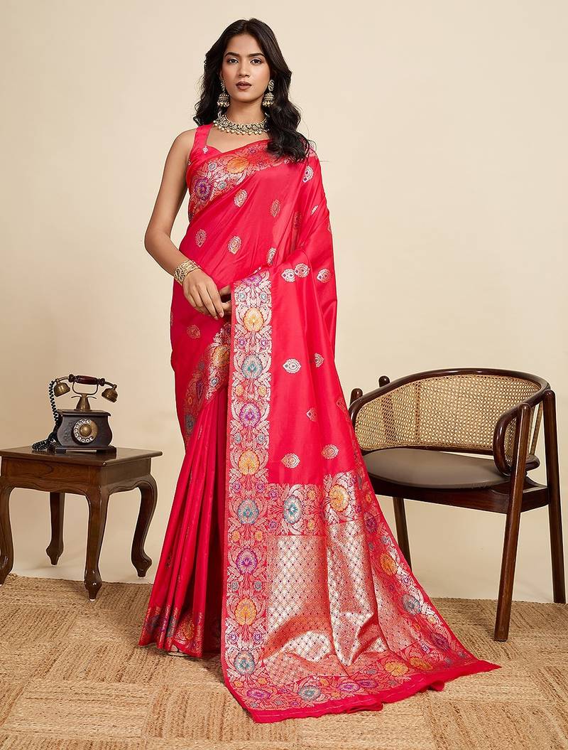 • Saree : Color- Pink / Fabric- Art Silk • Blouse : Color- Pink / Fabric- Art Silk Saree Details