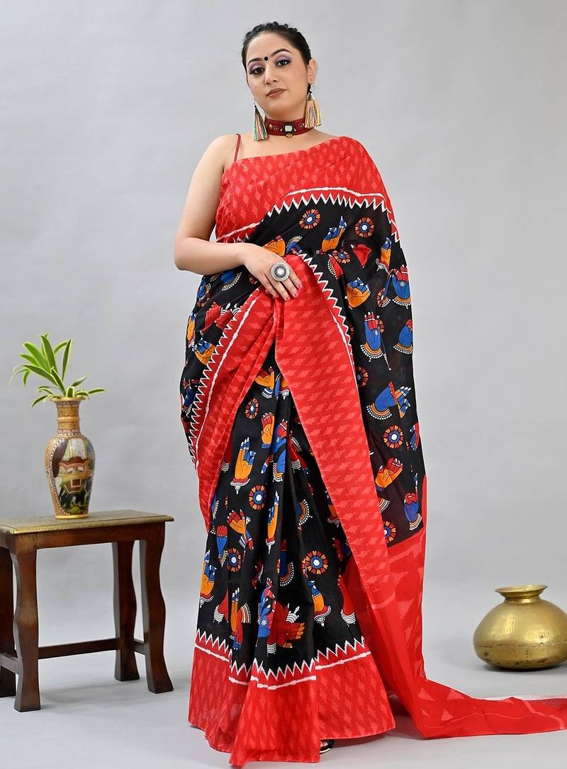 • Saree : Color- Black / Fabric- Pure Cotton • Blouse : Color- Red / Fabric- Cotton Saree Details