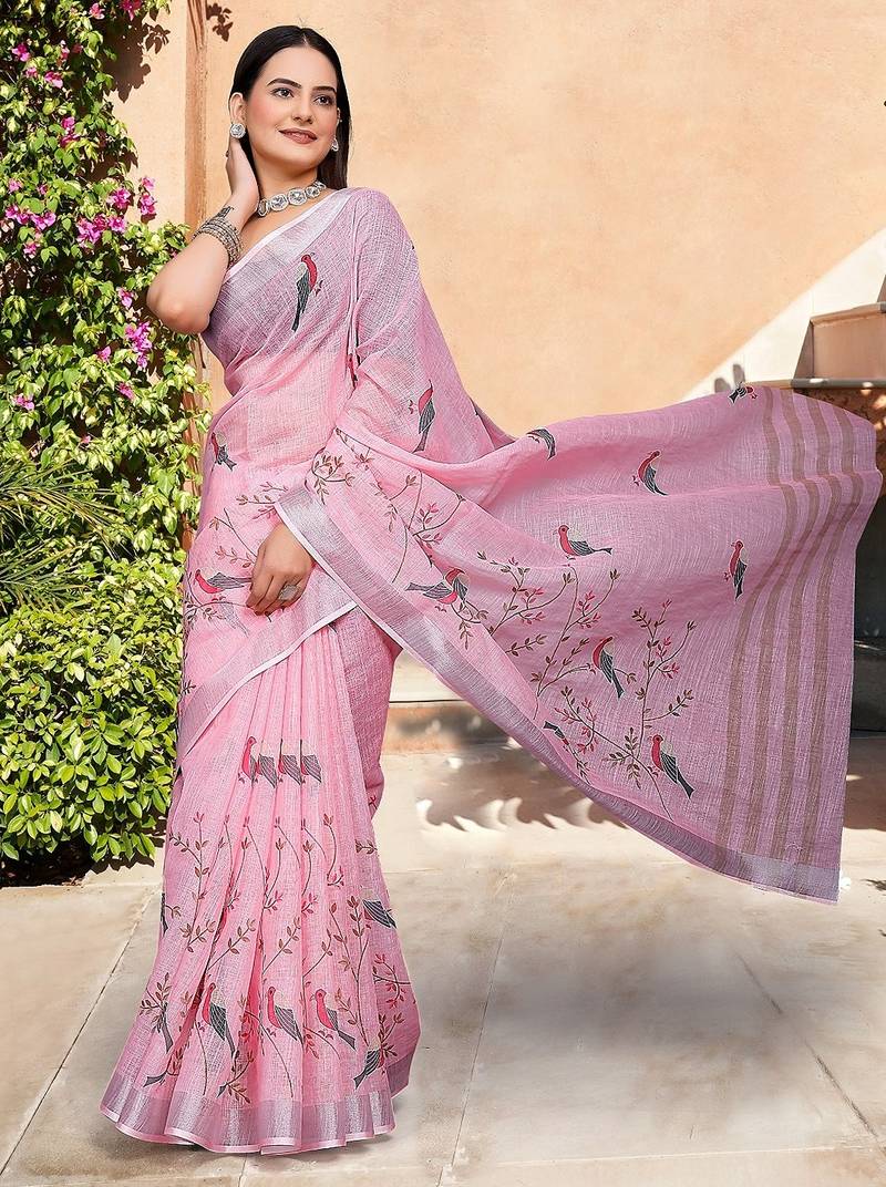 Light Pink Printed Pure Cotton Light Pink Saree With Blouse
