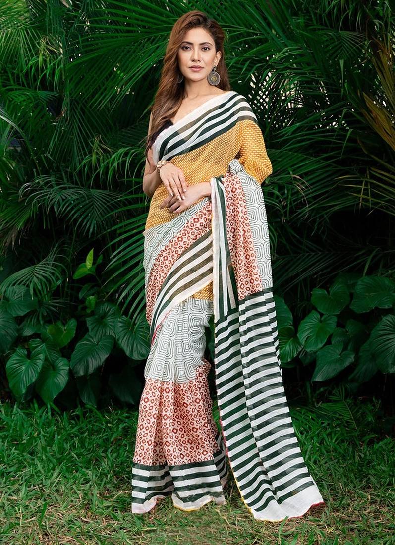 Multicolor Printed Pure Cotton Multicolor Saree With Blouse