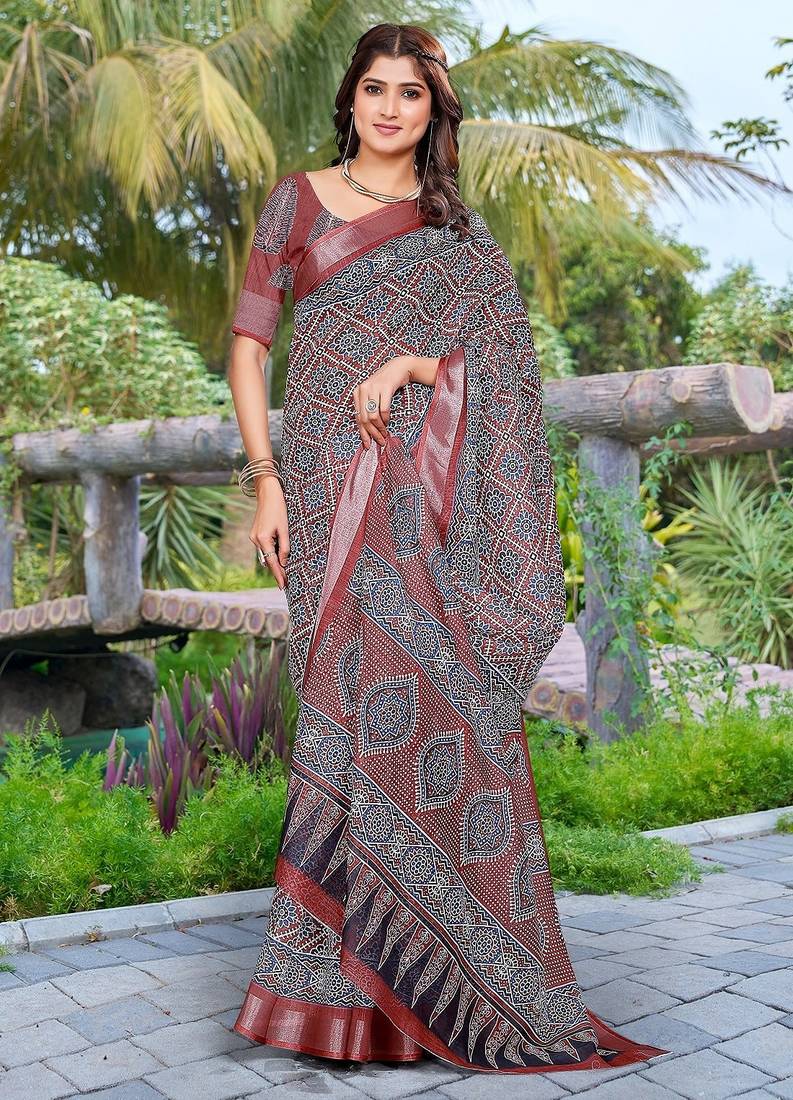 Multicolor Printed Pure Cotton Multicolor Saree With Blouse