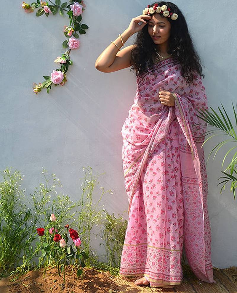 • Saree : Color- Pink / Fabric- Pure Cotton • Blouse : Color- Pink / Fabric- Cotton Saree Details