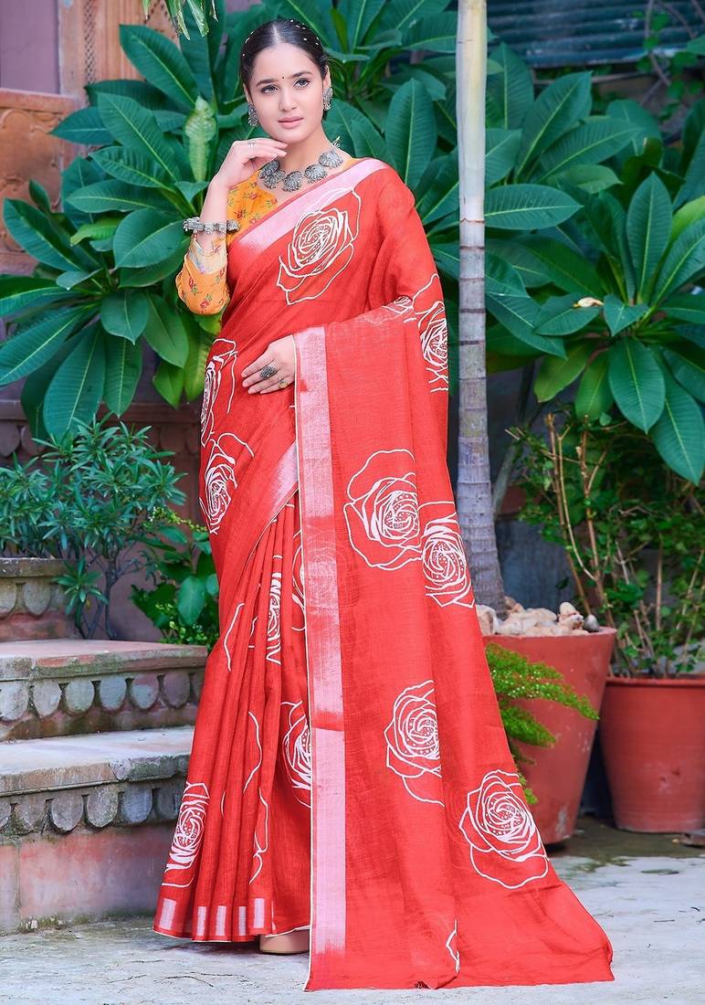 • Saree : Color- Red / Fabric- Pure Cotton • Blouse : Color- Orange / Fabric- Cotton Saree Details