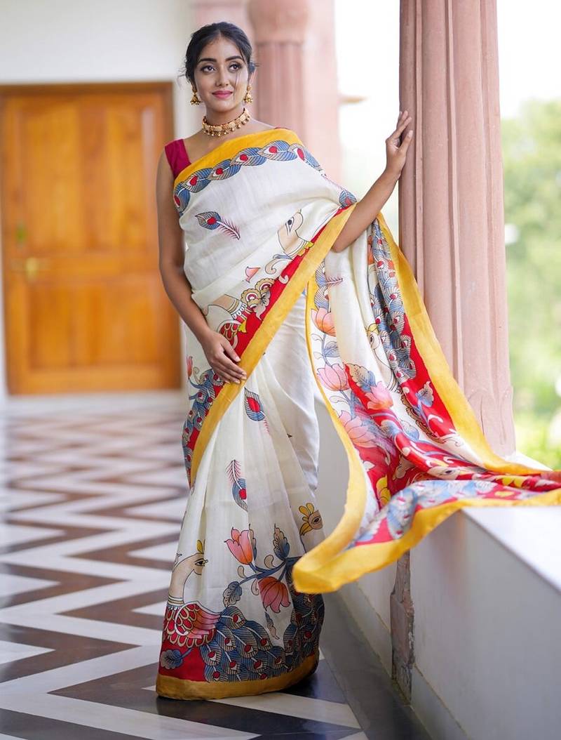 • Saree : Color- White / Fabric- Pure Cotton • Blouse : Color- Red / Fabric- Cotton Saree Details