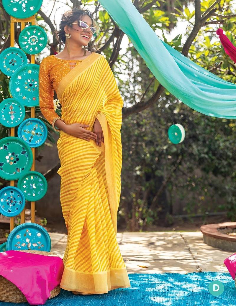 Yellow Printed Pure Cotton Yellow Saree With Blouse