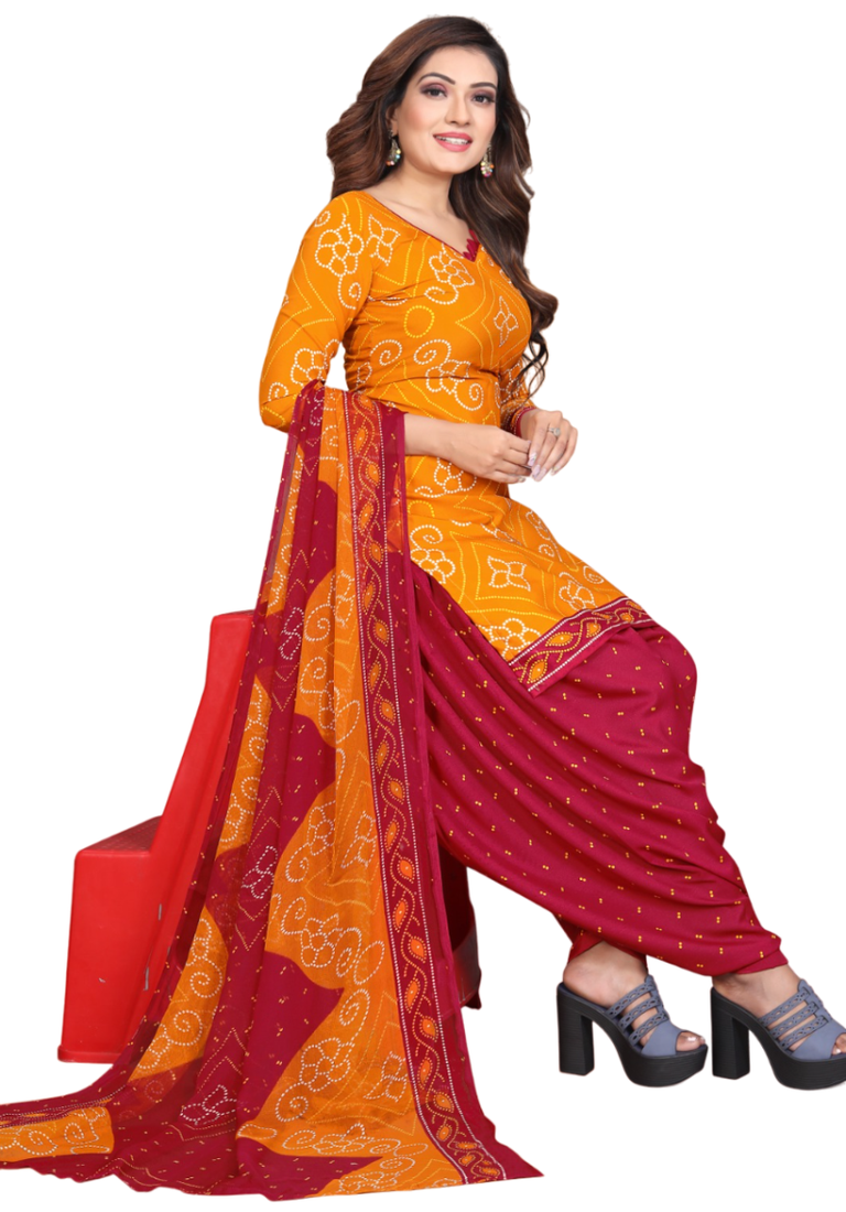 Unstitched Printed Crepe Kurta & Patiyala Dress Material With Top, Bottom & Dupatta