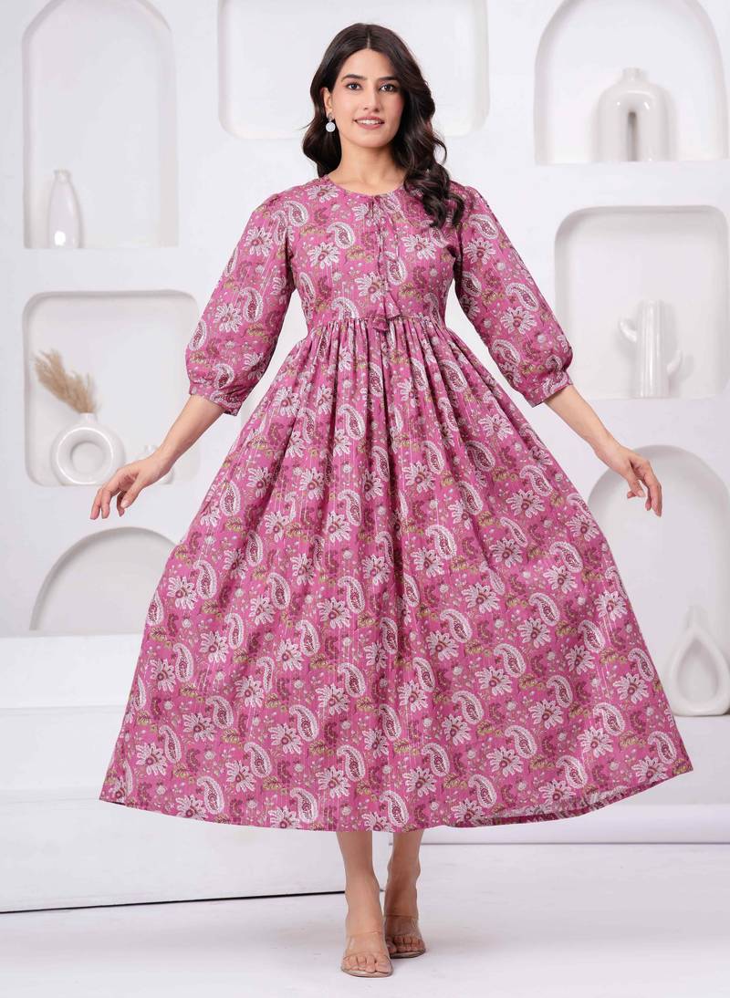 Pink Cotton Mirror Work And Sequance Work Kurta For Women