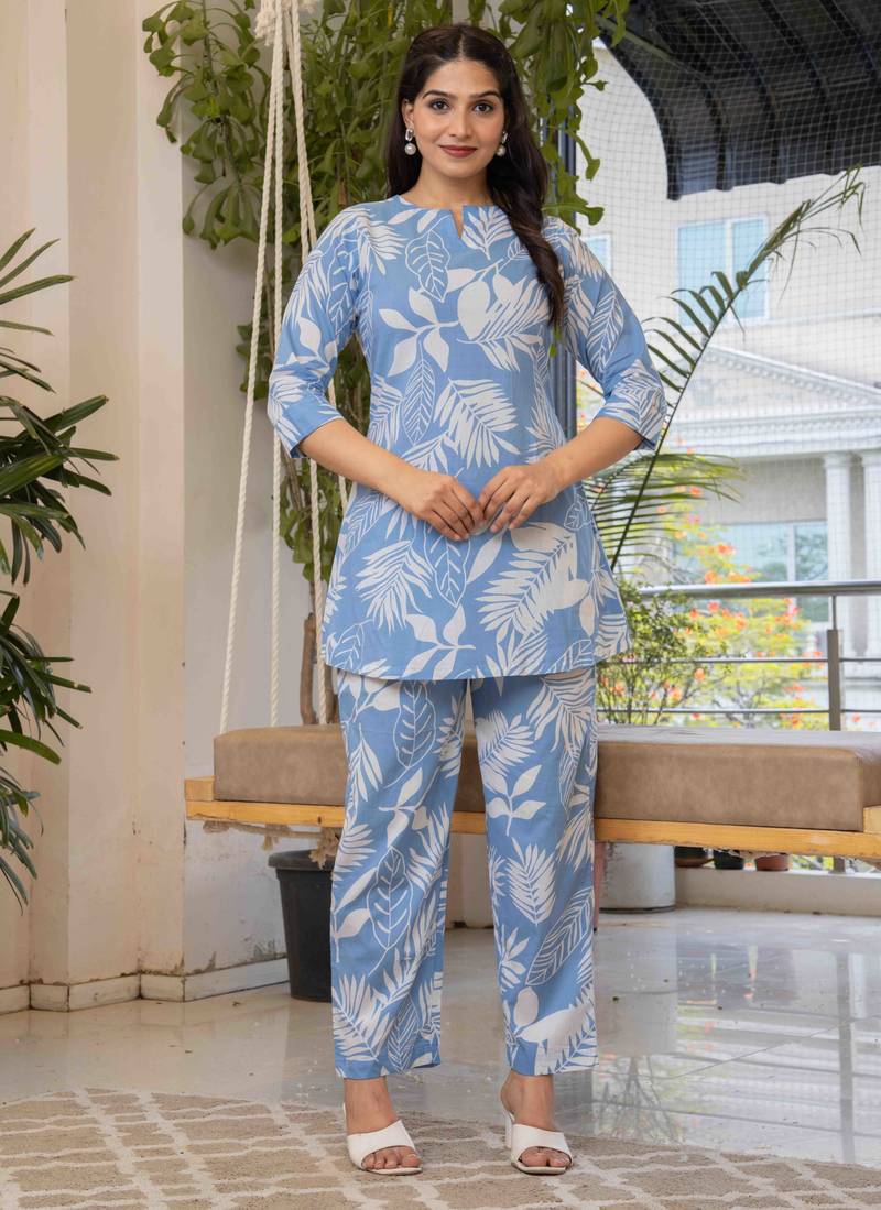 • Product Id : 4701562 • Package Details : 1 Kurta / 1 Pant • Type : Kurta Sets • Work : Printed • Type : Floral Print • Sleeve : Quarter Sleeve • Color : Blue • Fabric : Pure Cotton • Stitching : Stitched • Length : 50.0 Payments [+]