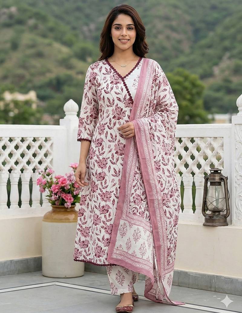 • Product Id : 4723340 • Package Details : 1 Kurta /1 Trouser / 1 Dupatta • Type : Kurta Sets • Work : Printed • Type : Floral Print • Sleeve : Quarter Sleeve • Neck Style : V Neck • Color : Brown • Fabric : Pure Cotton • Stitching : Stitched • Length : 48.0 Payments [+]