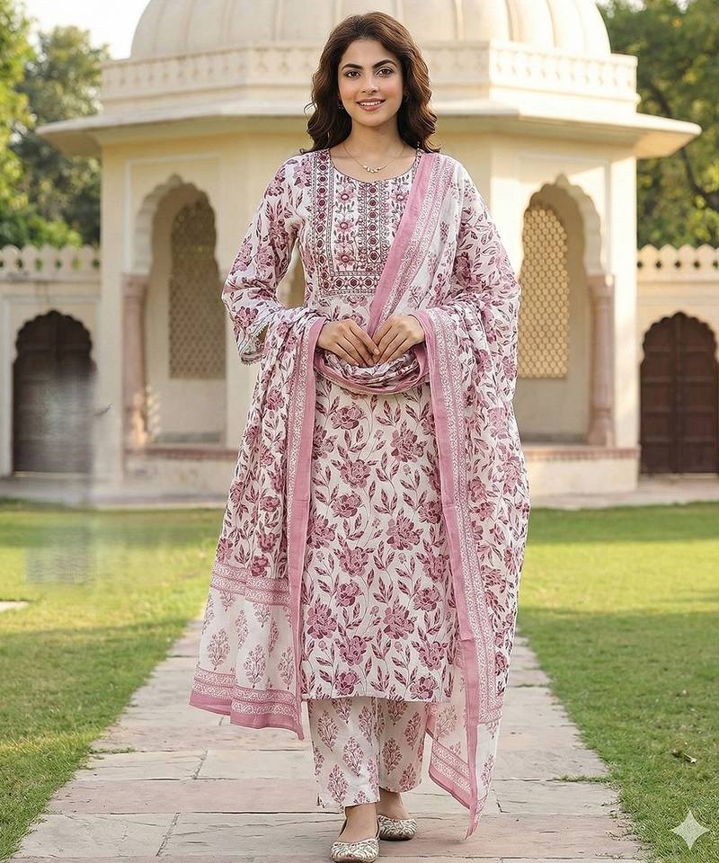 • Product Id : 4723384 • Package Details : 1 Kurta /1 Trouser / 1 Dupatta • Type : Kurta Sets • Work : Printed • Type : Floral Print • Sleeve : Quarter Sleeve • Neck Style : Round Neck • Color : Maroon • Fabric : Pure Cotton • Stitching : Stitched • Length : 46.0 Payments [+]