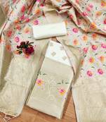 Cream Soft Banarasi Silk Zari Woven Design Dress Material Unstitched