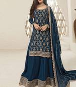 • Fabric : Viscose • Color : Teal • Style : Palazzo • Max Length : 2 Metres (Fully Stitched) • Length : 2 Metres (Fully Stitched) • Color : Teal Dupatta Details
