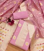 Women Pink Organza Woven Design Unstitched Dress Material