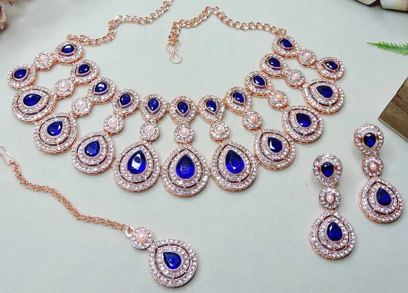 Add this stunning rose gold-plated stone necklace set to your cart today and transform your next celebration into a truly unforgettable style moment.