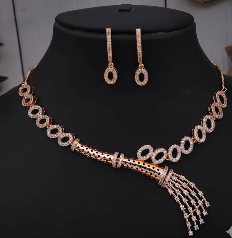 • Product Id : 4704089 • Package Details : 1 Necklace Set /1 Pair Earring • Type : Necklace Sets • Look : Designer • Jewellery Work : Gold Plated • Plating : Yellow Gold • Base Material : Alloy • Color : Rose Gold • Care : Store In A Cool, Dry Place. Avoid Contact With Water, Perfumes, And Harsh Chemicals. Payments [+]