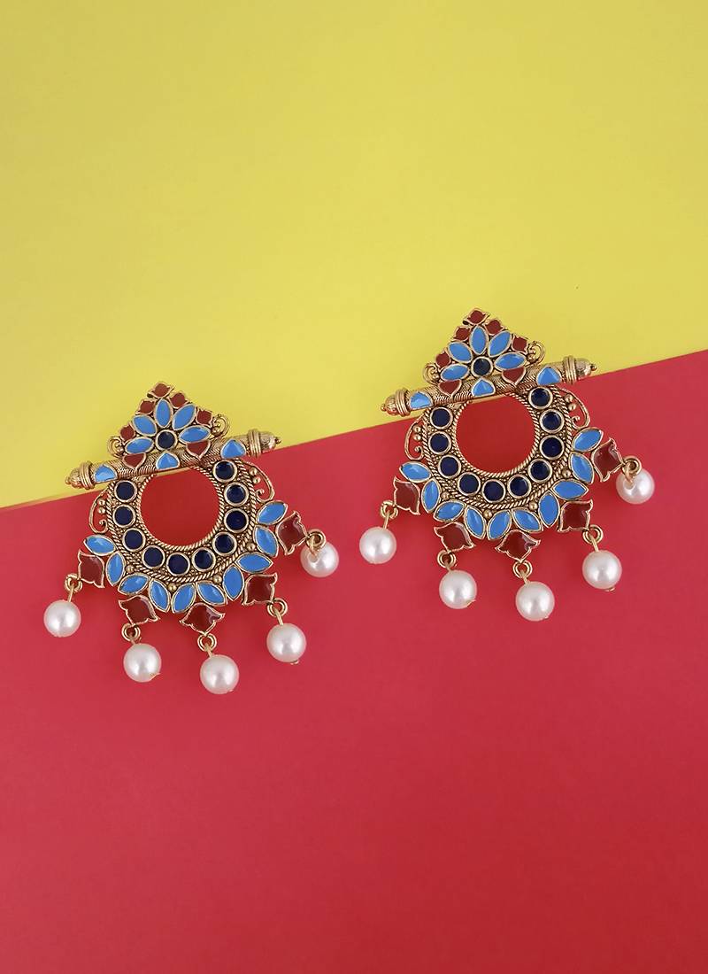 Jewel Maze Gold Plated Blue Meenakari Earrings